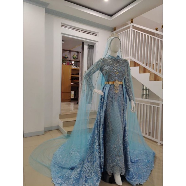 Tb 228 gaun baju pesta pengantin pre wedding dress muslim biru ekor. | ✓free shipping ✓lowest price ✓hot .